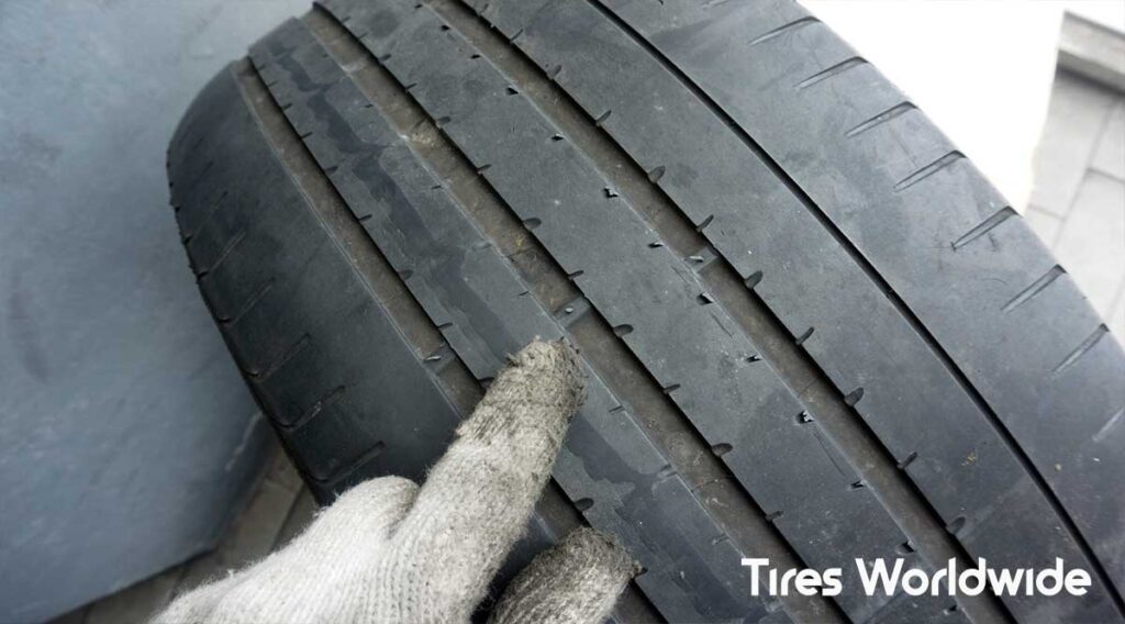 If you see the inside edge wearing faster than the outside, or the tread looks wavy or rough in certain spots, that’s a red flag. This can be caused by things like bad alignment, hard turns, or just regular driving on rough streets.